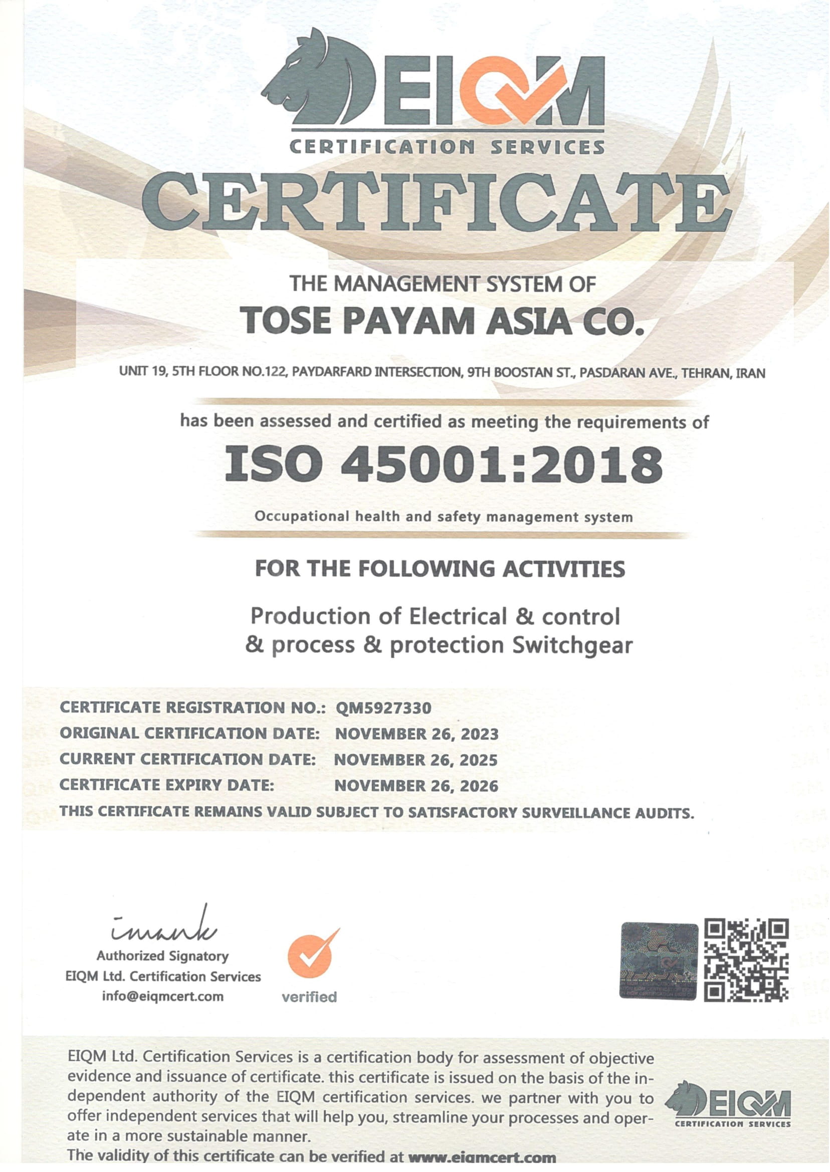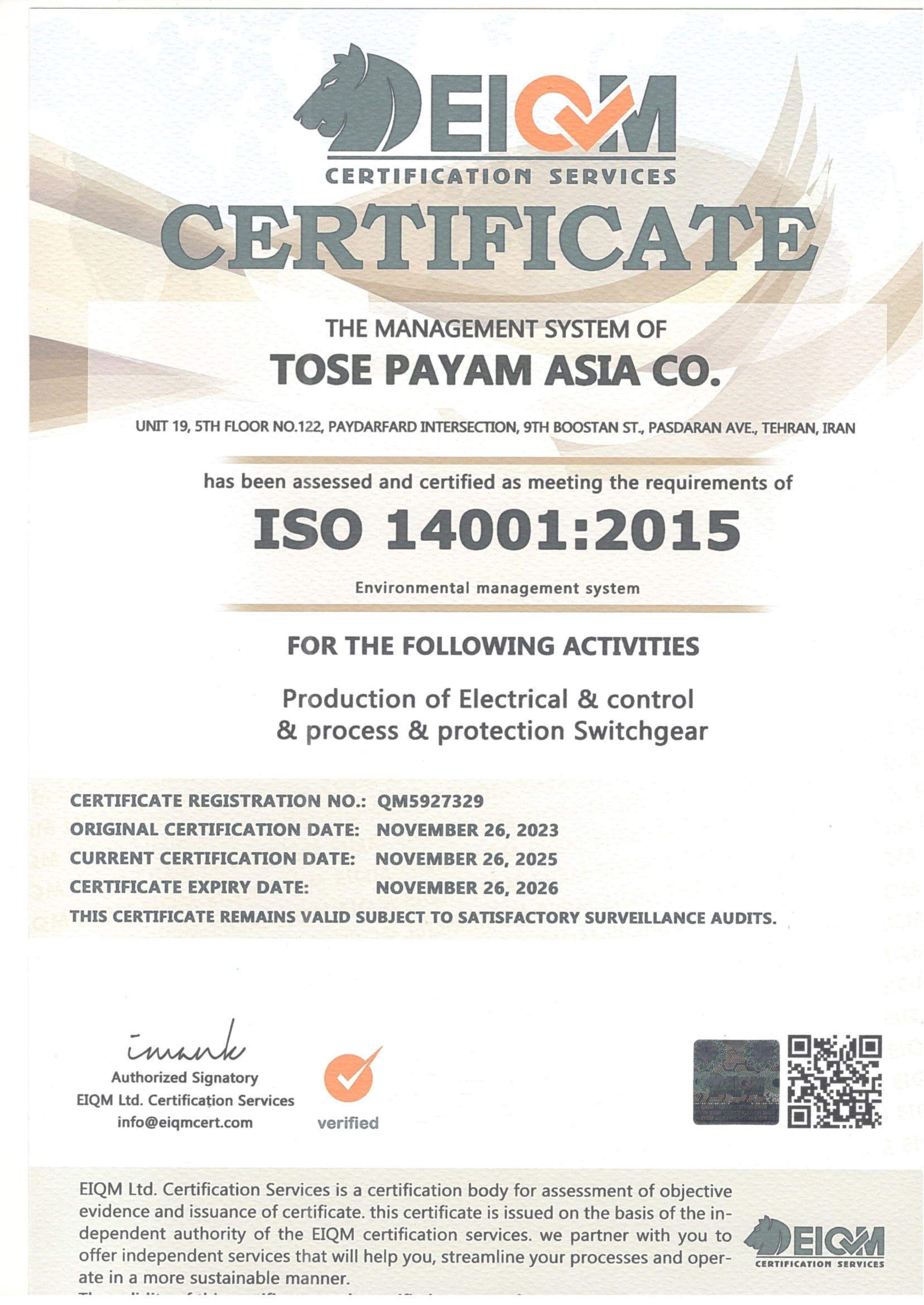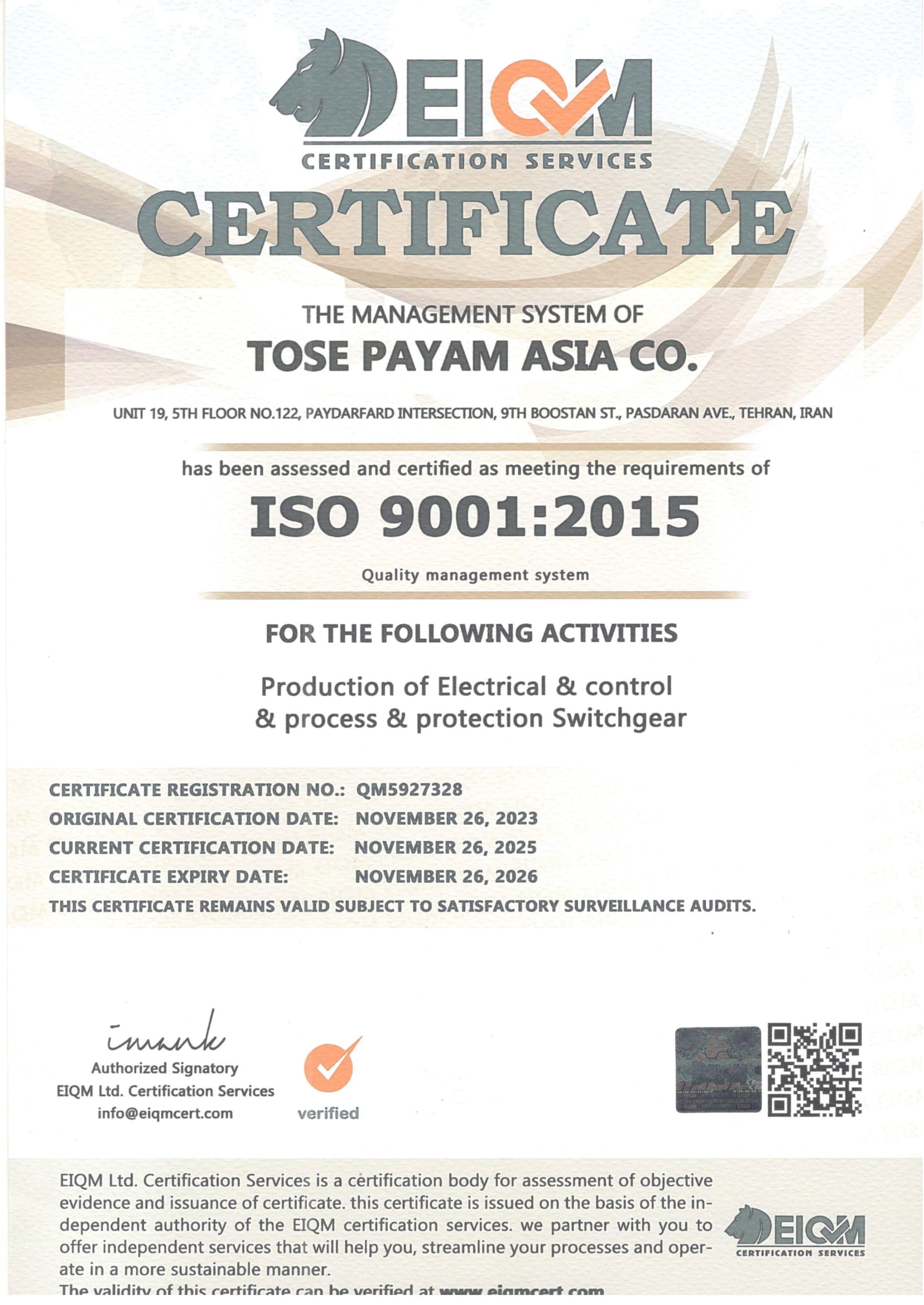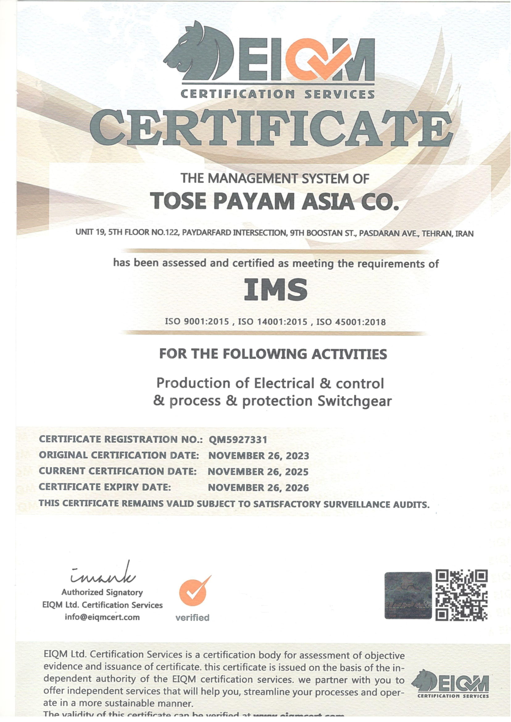 گواهینامهها و ISOهای دریافت شده توسط شرکت توسعه پیام آسیا
